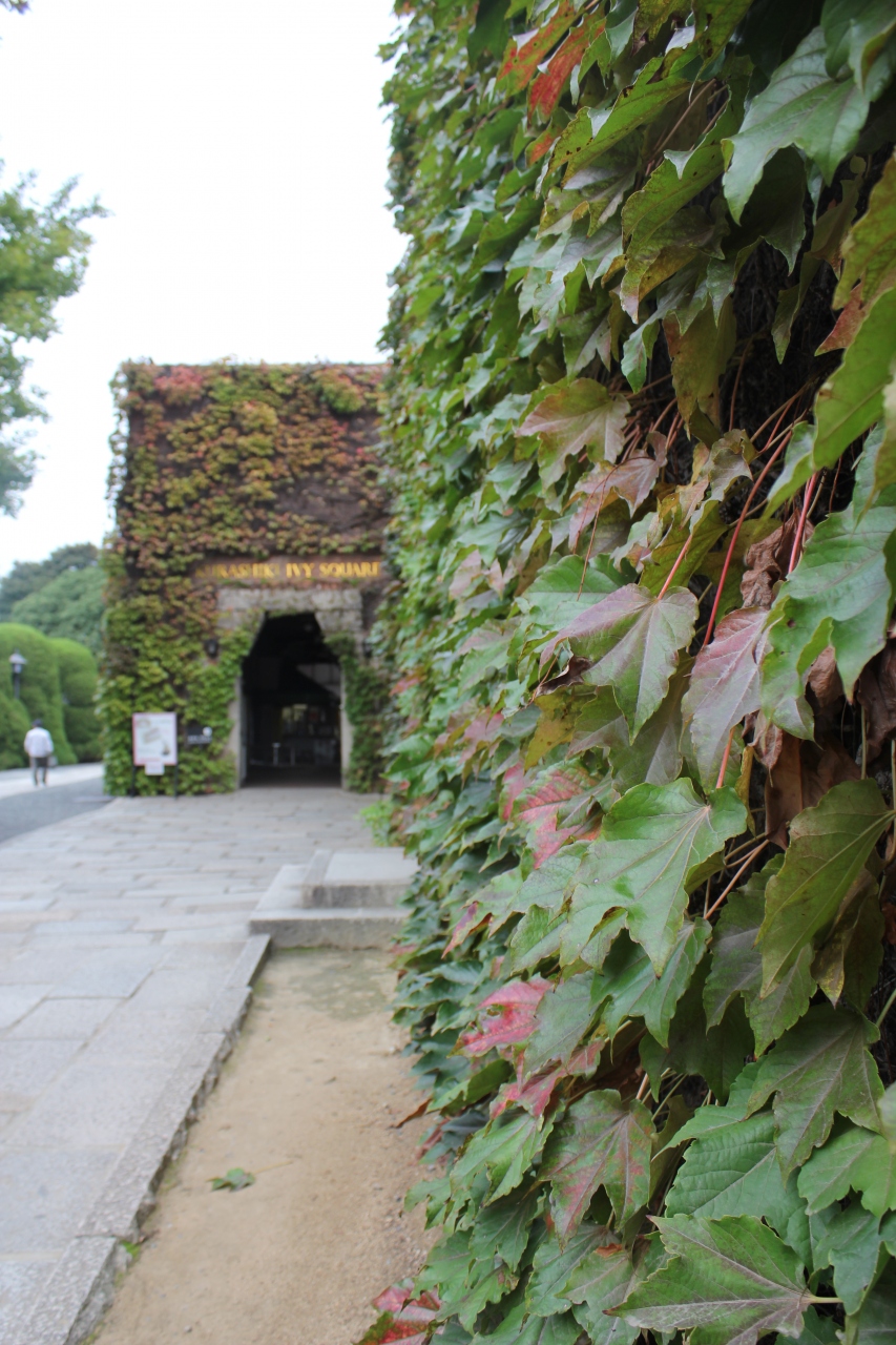 10月末に行ったのでツタの葉は半分ぐらい落葉していてツルがたくさん這っている様子が見え、残っている葉は色付いているものもあり、それもまた雰囲気がありました。