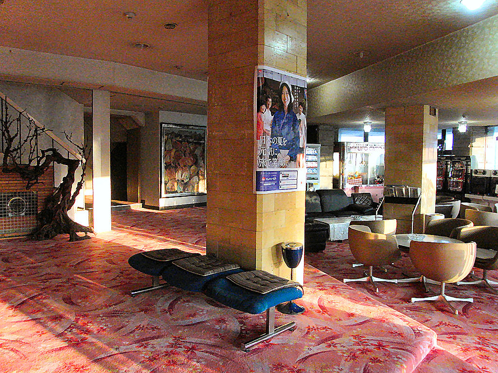 家族旅行にはぴったりの、ゆったりとした趣のある観光旅館でした。「いかにも観光旅館」といったたたずまいのロビーには、演歌のポスターあり、木の置物あり、灰皿あり、信楽焼のタヌキあり・・・。鳥羽の玄関口であるJR・近鉄鳥羽駅や鳥羽水族館、ミキモト真珠島が間近にあって観光拠点として大変便利です。