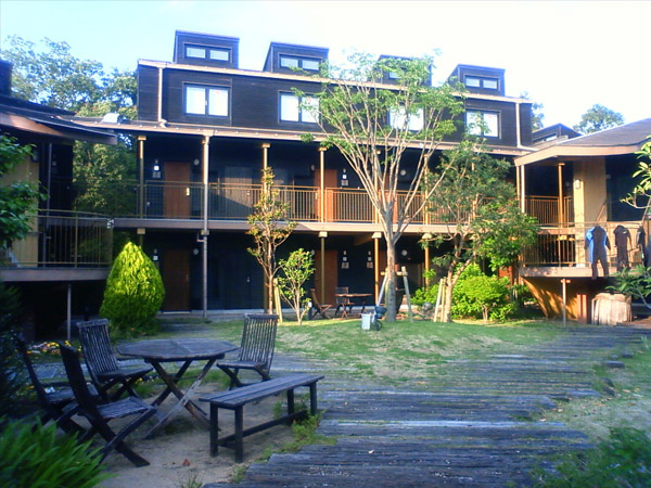 客室は別棟。お庭やコテージ風の建物がおしゃれ。