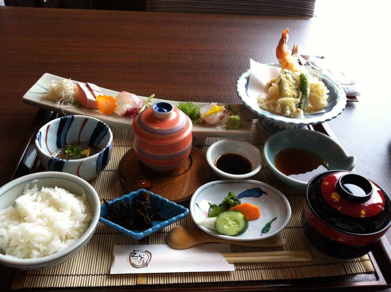 「食事処えいたろう」で1500円の刺身天ぷら定食を頂きました。