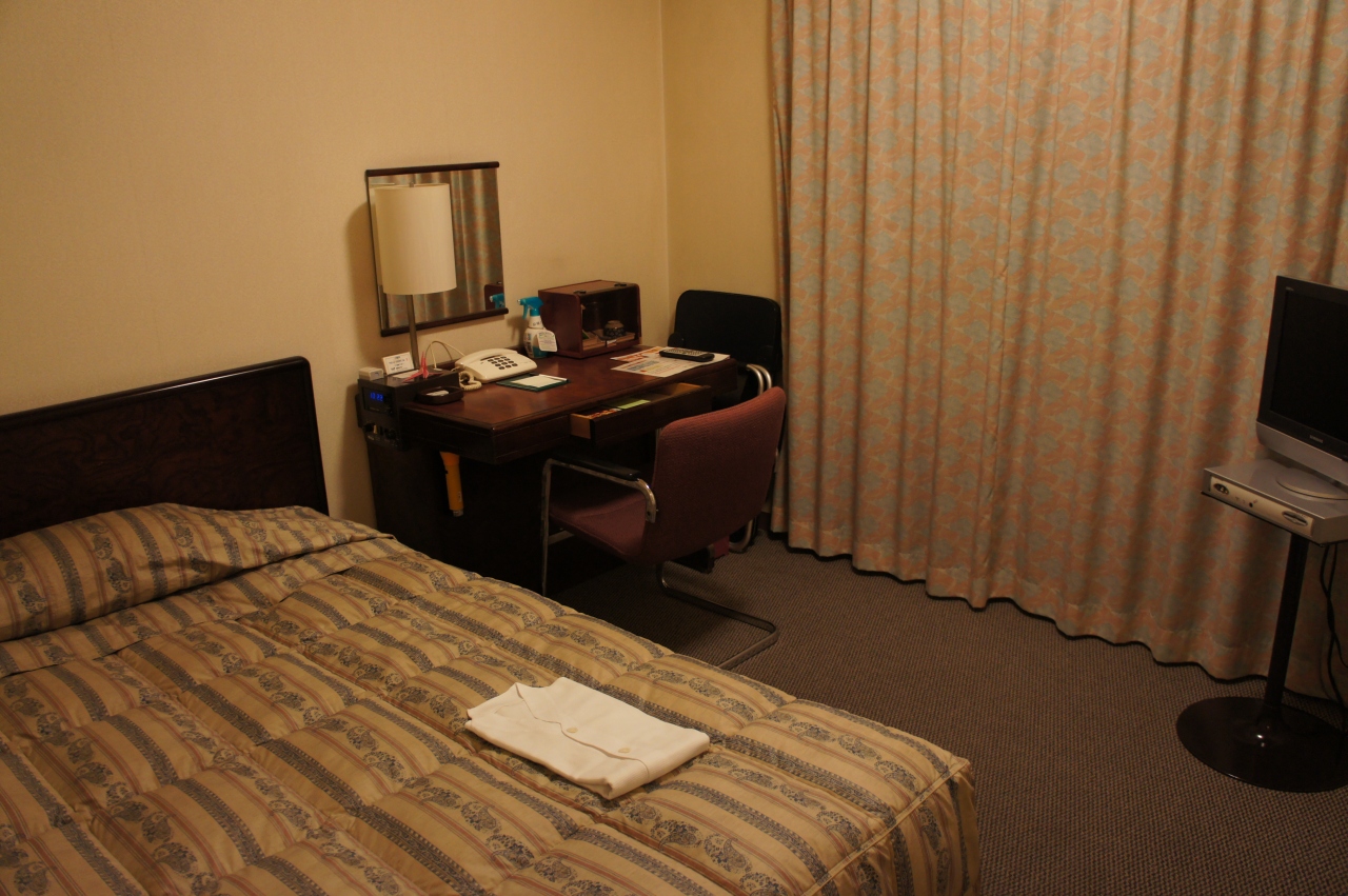 前橋さくらホテルは、前橋駅からケヤキ通りを抜けたところ。歩道橋のある大きな交差点に面した立派な建物です。7日前なら、1泊4000円という激安プランがあって、これを利用しました。ロビーは広くて、シティホテルの上といった感じ。建物ががっちりしているので、安心感もありましたが、ただ、部屋は写真のように、ビジネスホテルと変わりませんでした。周囲の飯屋はあまりないようでしたが、見つけた「敦煌」というラーメン屋さんは、けっこうお勧め。