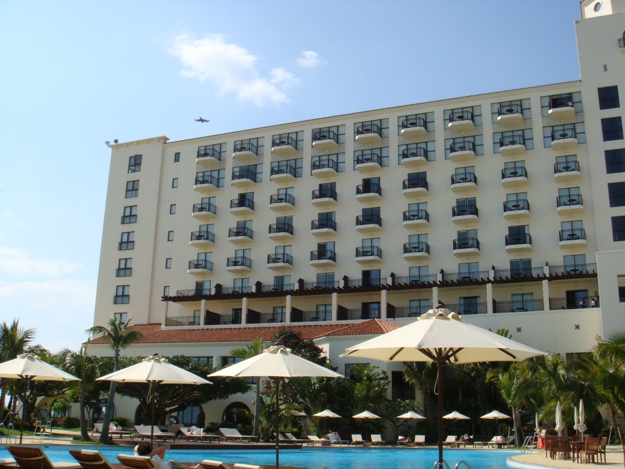 家族で沖縄旅行の時、座喜味城跡に近いこのホテルを利用。那覇空港でレンタカーを借りて、約1時間で到着できる距離。南欧風の情緒が漂い、ホテルすぐ裏側にはホテルのプールと海があり、リッチな雰囲気が味わえる高級リゾートホテル。客室から海を見下ろす風景は絶景。ホテル料は高いが、高いだけの事を満喫できるホテルだと思います。