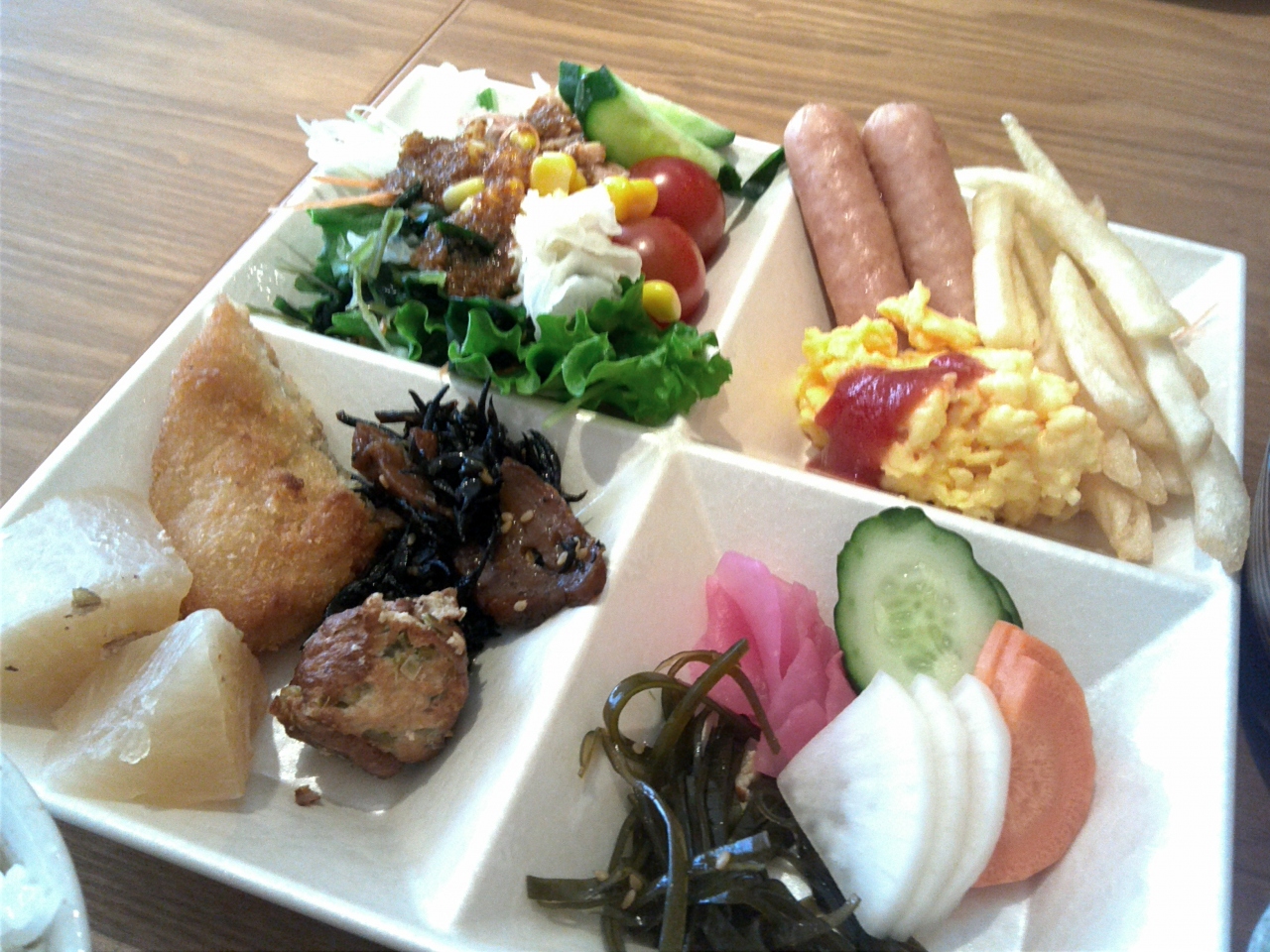 朝食はバイキング形式で、沼津の名産の釜揚げしらすやあじの開きなども味わうことができました。