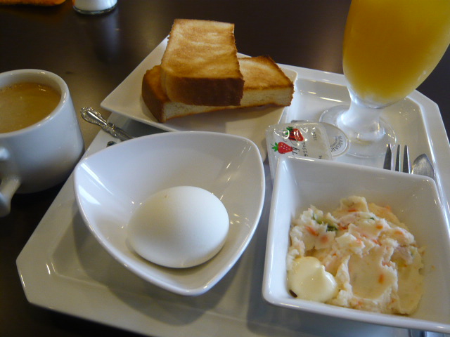 朝食は300円の洋食を頂きましたが、パン、サラダ、ゆで卵、コーヒーのみ。コーヒーはお代わりできますが、パンは追加なしのため、男性は物足りないと思います。
