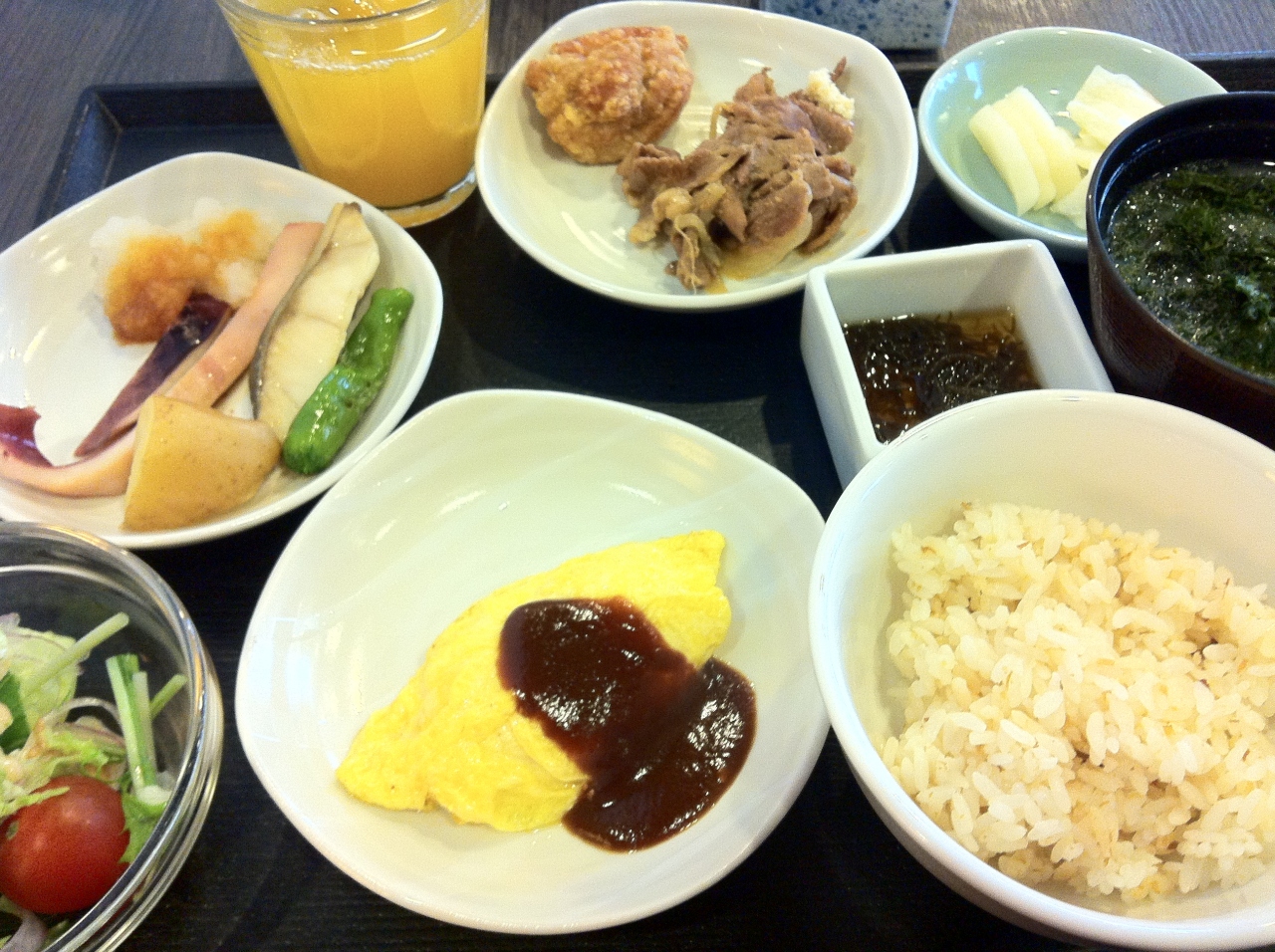 北海道ということで朝食ではザンギやジンギスカンがありました。