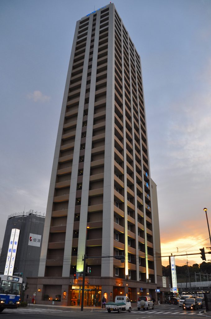 久しぶりに会う友人と夕食をとり、寝るだけの宿泊だったので「低層階プラン」にした。部屋に入ると、空間にゆとり感があった。テレビは壁につけ、ドライヤー置き場、聖書など定番書籍置き場も視線とぶつからない位置の壁につくっていて、デスク周りを広く使えるなど工夫があるからだろう。煎茶のほか梅昆布茶もあった。冷蔵庫あり、ウオシュレットあり。朝食は1階ロビー。おから(?)と一緒の卵焼き、春雨サラダなど健康食もうれしい。数に限りはあるが無料朝刊があった。翌日の日程を考えて、熊本駅、バス乗降場に近いここを選んだ。飲み屋の多い繁華街からは離れる。