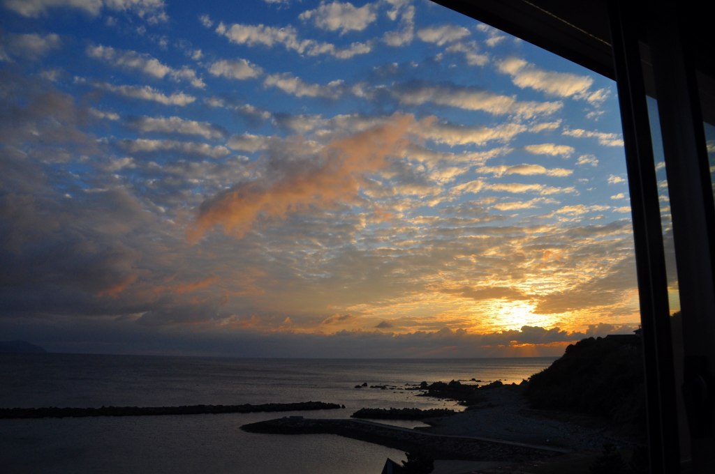 あいにくと雨だったので、予定を切り上げて、早めに到着。フロントの女性は、こちらから言わないうちに「お部屋の準備ができているかどうか、清掃係に確認しますので少しお待ちください」と言ってくれた。15分ほどですぐ部屋に入れた。雨に濡れて寒かったこともあり、心使いに感謝した。部屋は全室がオーシャンビュー。雨は夕方にはあがり、部屋の窓から海に沈むきれいな夕日と、空の照り返しが見られ、気持ちがますますなごんだ。二食つきを選んだが、夕食は種類、味、量のどれもがよかった。とくに、目の前で焼くアワビは大きさも新鮮さも満足。ほか、温かいものを温かいまま順番にタイミングよく出してくれた。温泉は5階(最上階)にあり、眺めが抜群。タオルは部屋からもっていく必要がある。サウナがあった。北欧は湖に飛び込むが、ここは浴室からベランダに出て海を眺めながら体温調節するのが気持ちよい。ネット接続は和室ではできないそうで、洋室を選んだ。トイレにウオシュレットはない。