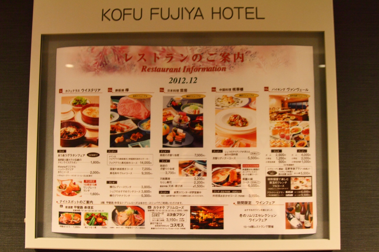 富士山・八ヶ岳・夜景の展望が最高です。夕食は、いろんなレストランがありチョイスできます。今回は、バイキング(和洋中)にしました。夜景を見ながら舌鼓が打てます!!(ローストビーフは絶品でした!!)各種デザートやソフトドリンク・果物・ソフトクリームなどもあり、お子さんも満足しますよ。お風呂は、部屋風呂と大浴場があり、泉質は癖がなくほどよい感じです。