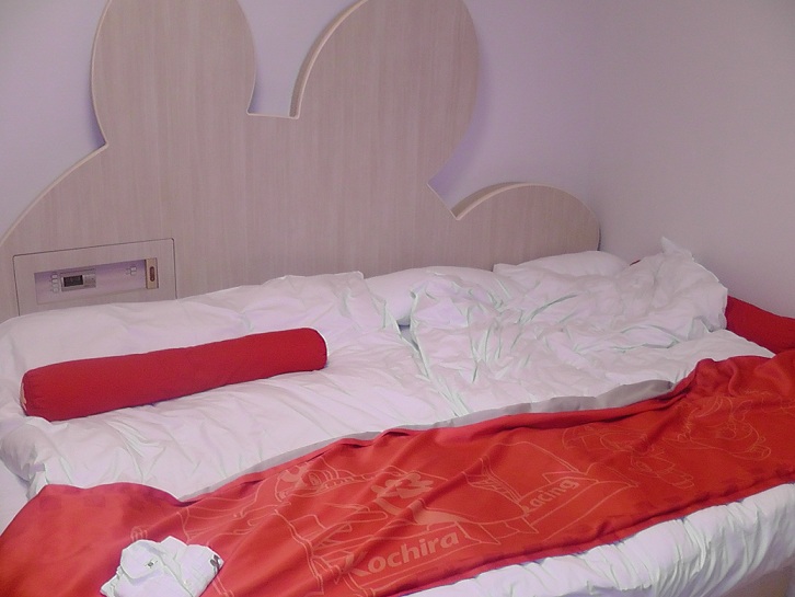 ファミリールームだったのですが、ちびっこが喜びそうなかわいらしい内装に、4人くらい並んで寝ても余裕があるローベッド(高さがマット程度なので、安全安心です)があり、とても素敵なお部屋でした。