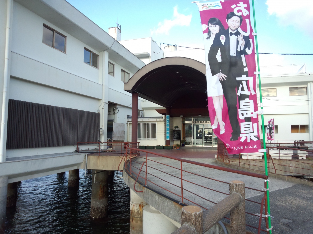 海上に建つ国民宿舎です。ホテル前に桟橋があるので、広島港から行く時はホテル前に止まる船を利用すると便利です。部屋からは海上自衛隊の旧海軍兵学校が見えます。設備は古いのでトイレは共同です。部屋は改装されているので明るい感じです。宿泊者は隣にあるシーサイド能美という温泉施設を1回利用することができます。塩分が強いお湯です。