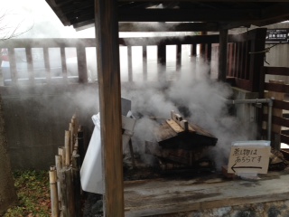 一覧を見るめの前で温泉の湯けむりがもくもく