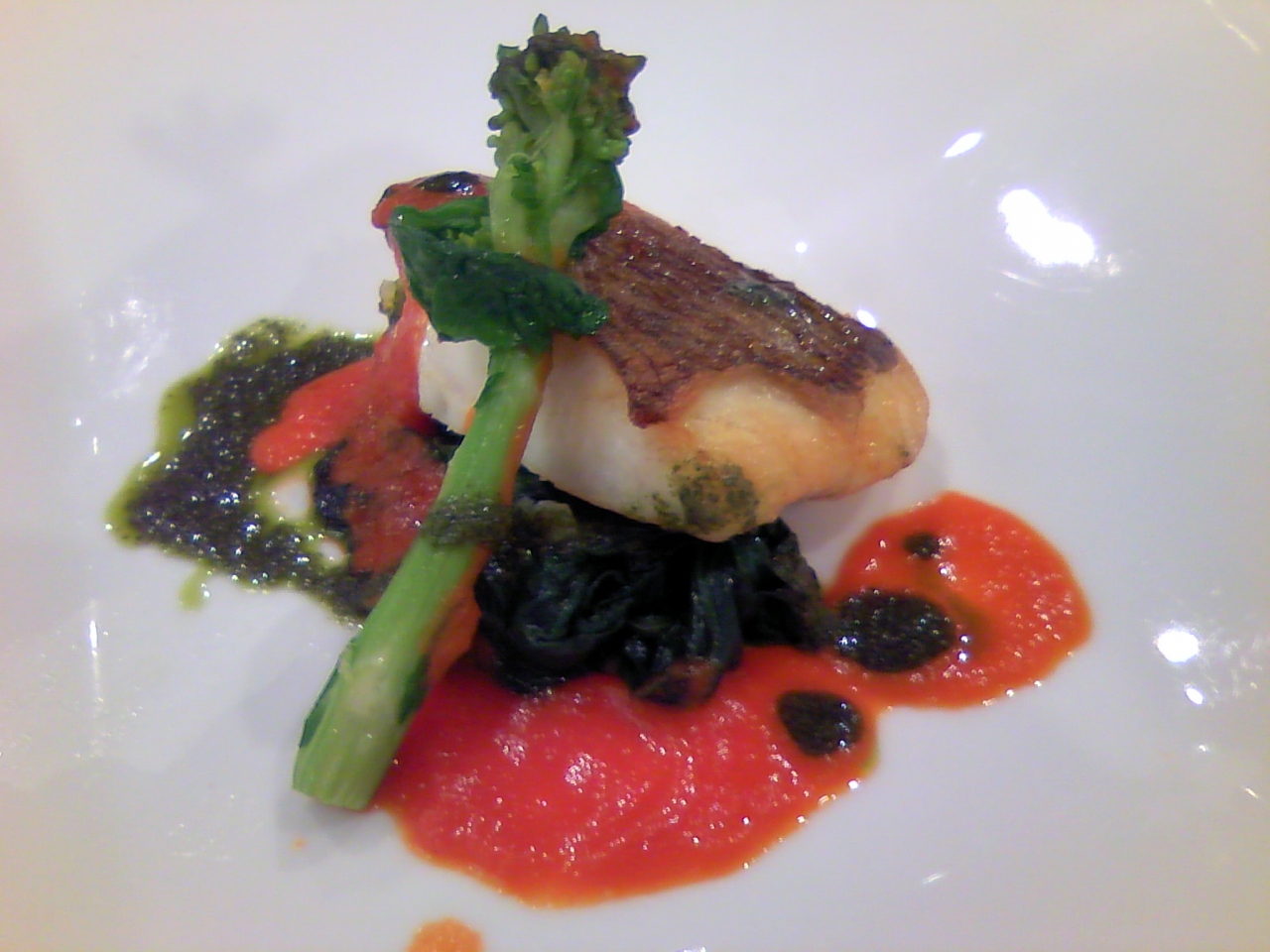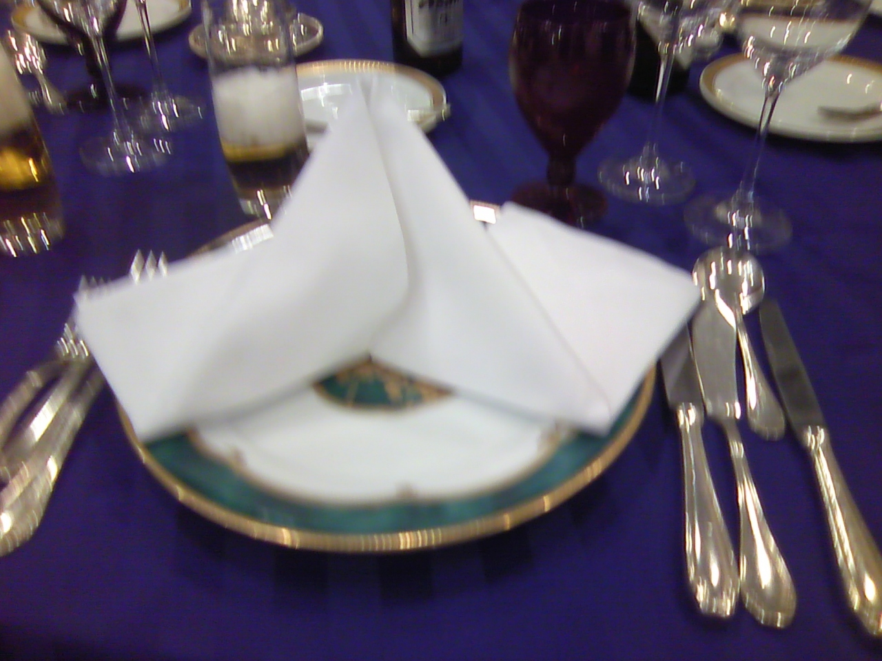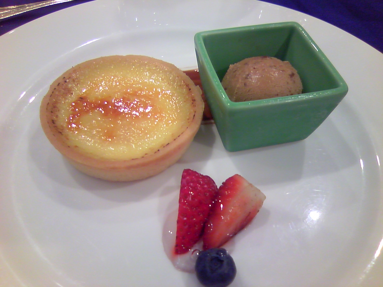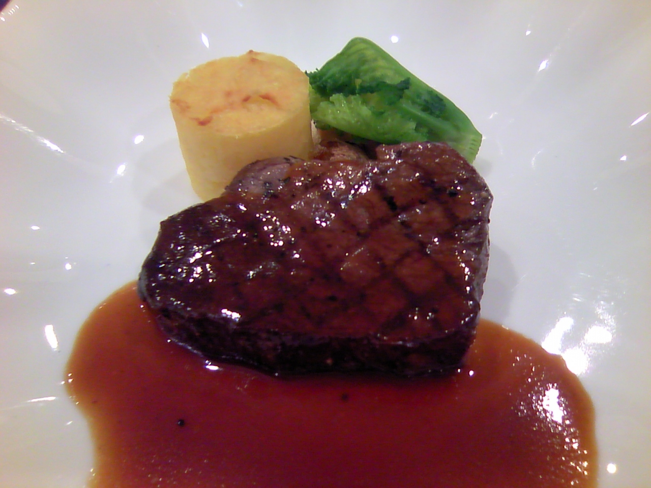 鴨のローストから始まって、スモークサーモンとかぶら(ブルベリーとクランベリーのソース)、野菜スープ、白身魚、ソルベ、フィレステーキ、クレームブリュレとアイスクリーム、コーヒーのフルコースでした。