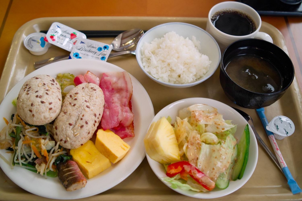 明朝一番で美ら海水族館に行くために名護に泊まりました。このホテルは朝食がいいという評判で選びましたが想像以上にいいですね。ビジネスホテル系ではかなり充実した朝食と思います。食いしん坊のほうなので、ビュッフェスタイルはありがたいです。