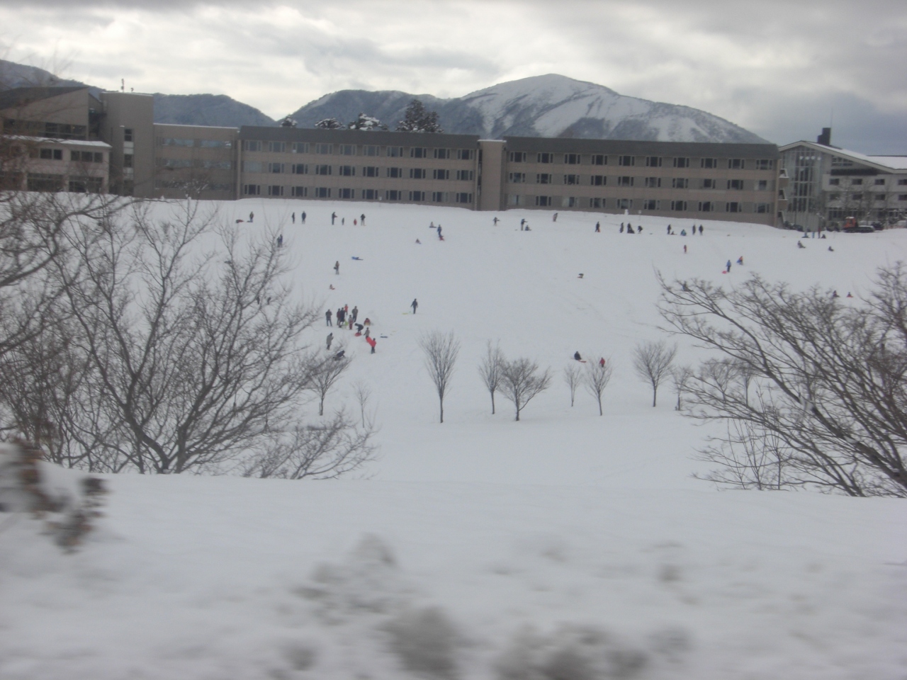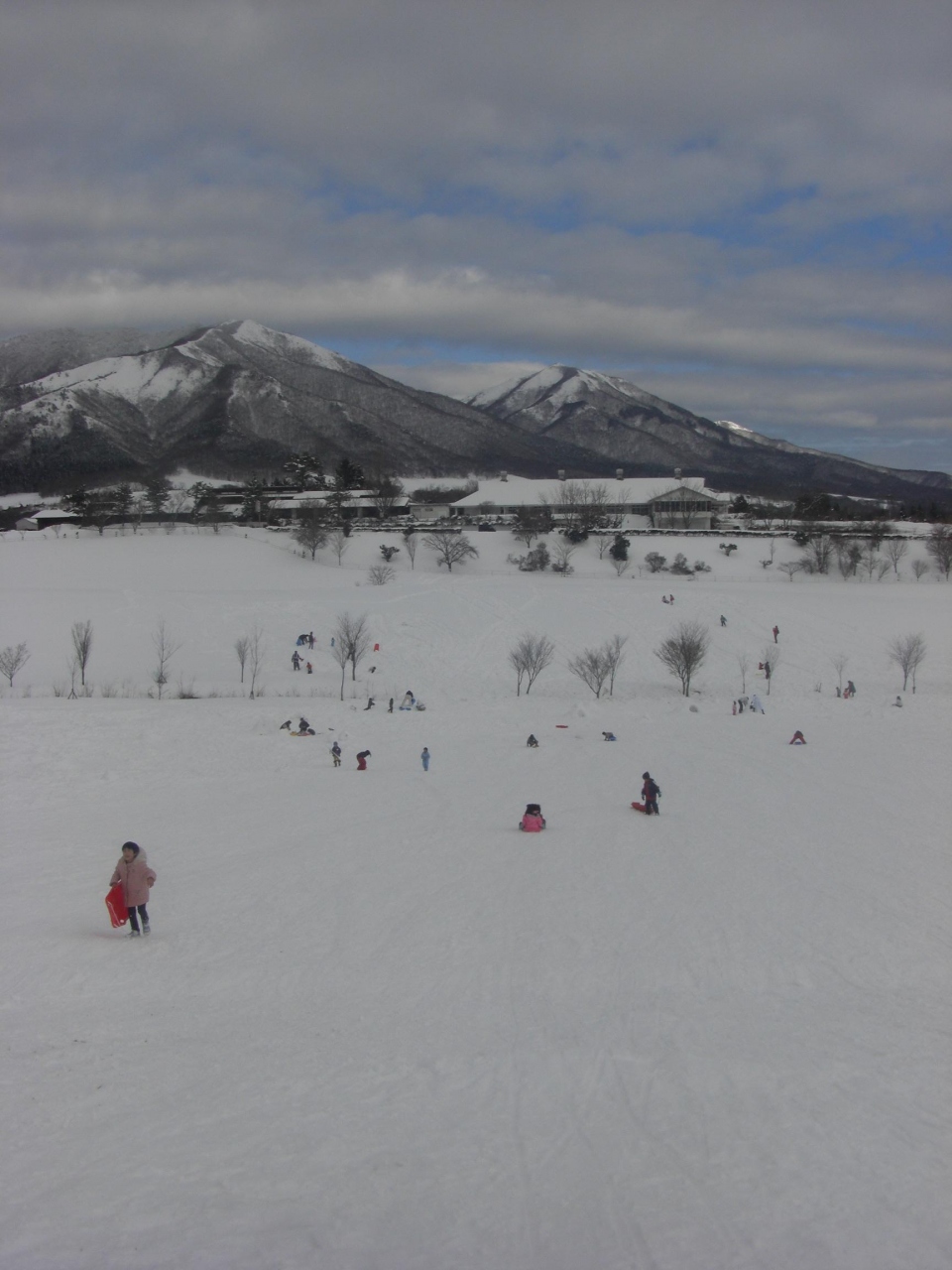 宿泊ではないのですが、通りがかりに休暇村そばの河原で大勢の人がソリ遊びをしているのを見つけて行ってみました。広い土手のようになっていて、ダイナミックなソリ遊びが楽しめます。登るのは自力ですが、我が家の子供達は何度も何度も楽しんでいました。大人がしても楽しかったです。