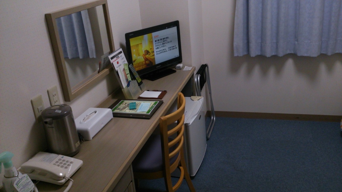 部屋は手狭ですが清潔感があって、1泊寝るだけには十分。