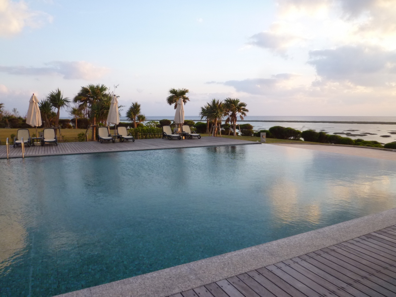 プールの向こう側はシンリ浜ですので、プールと海がつながっているように見えて、素敵でした。