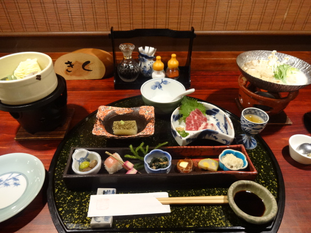 お部屋も二人でちょうどよいくらいでした。残念だったのは夕食と朝食をいただいたお食事処です。せまい食堂のような感じで、カウンター席でした。板前さんと対面するようなカウンターではなく、目の前は壁でがっかりしました。朝食時は窓から景色が見えてまだよかったのですが。。。 宿泊プランによりお部屋食も選べると思うので、お部屋食か、もっと広いお食事処を選んだ方がよいと思います。(まぁ私達が安いプランだったからだと思いますが) お食事は馬刺しもいただけて美味しかったです。
