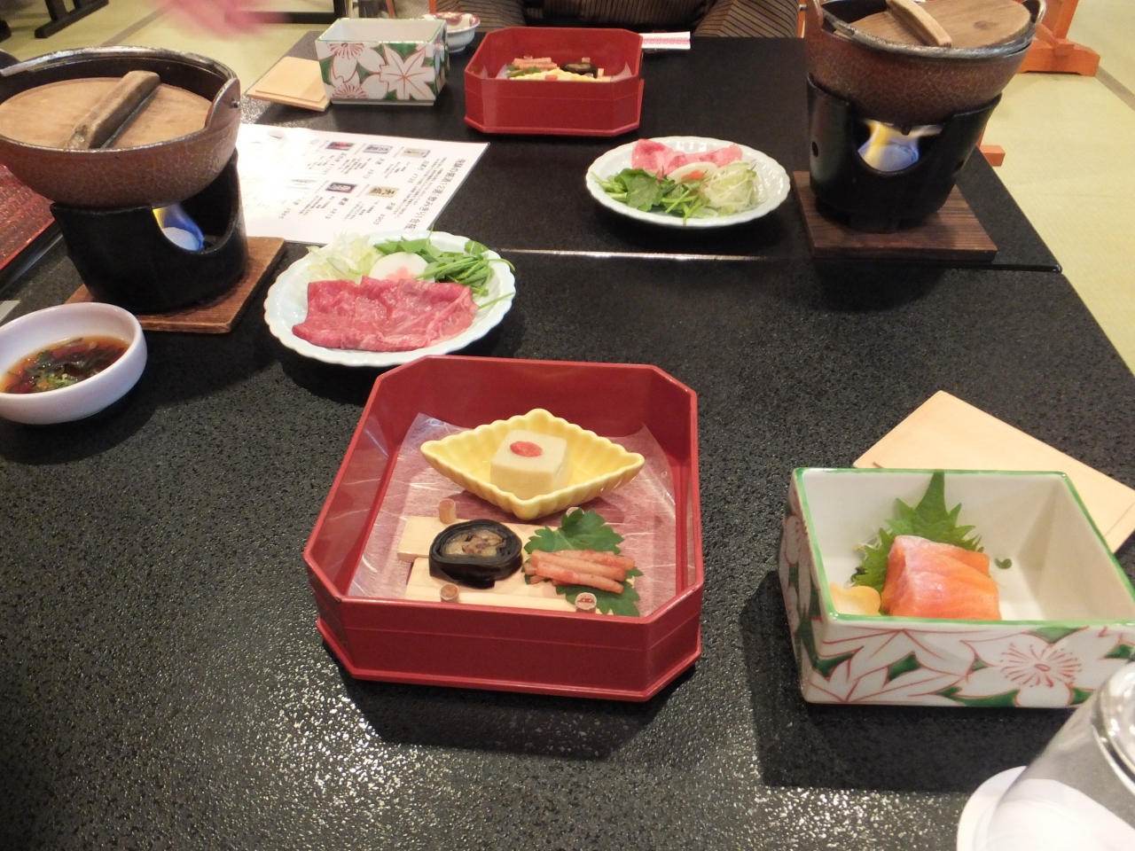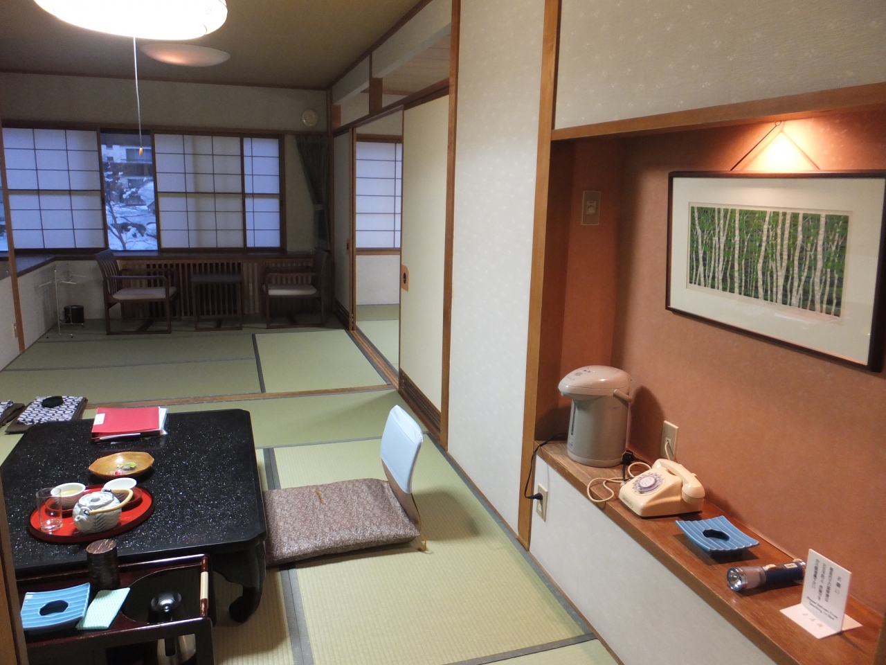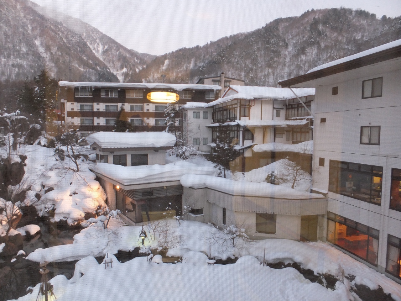 到着しての第一印象は 古き良き日本の宿、といった印象でしたが、雪の中庭と笑顔で迎えてくれた若い仲居さんたちの笑顔と丁寧な応対。しっかり教育されているな、と思わせてくれる従業員さんたちのおもてなしに満足! 夕食も団体ということで大広間でしたが、温かいものは温かく・・・また半分、バイキング式でしたが、大皿が寂しくなってもすぐに察して「今、温かいものをご用意していますので」と細やかな対応でした。お部屋も夫婦2人なのに2間続きのゆったりしたお部屋で中庭の雪の庭園を眺めることが出来、(ほとんどのお部屋が庭が見える造りのようでした)暖かかったですが、本館から大浴場に行く途中の廊下が ちょっと寒かったです。が、事前にHISの添乗員さんがそのことを教えてくださったので 寒い思いせずにいけました。また温まった後は 湯冷めせず、廊下も全く気にならず、むしろ気持ちよかったですね。お風呂は部屋にもありましたが、夜中の0時に1階と2階が入れ替わって男女それぞれ2つの大浴場が楽しめました。どちらもちがった趣の湯処で楽しめました。 飛騨の地酒、飛騨牛、苞葉焼きも楽しめ、HISのバス旅行でしたが、満足できました。