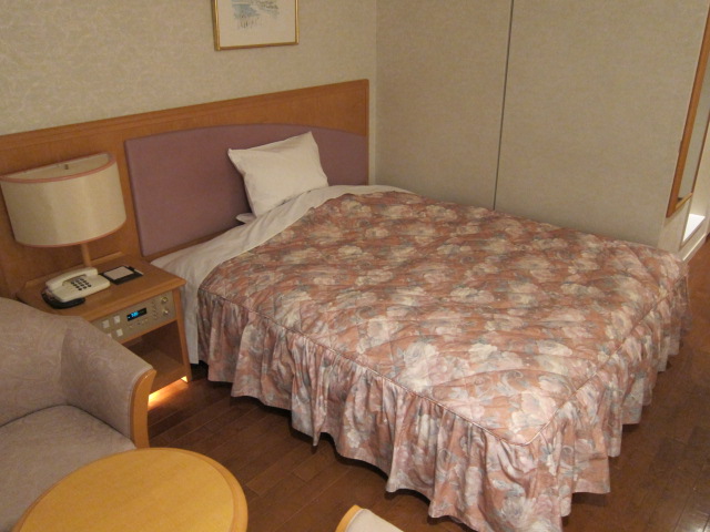 部屋かと思ったら、綺麗で広い。ベッドはセミダブル。大型のスーツケースが