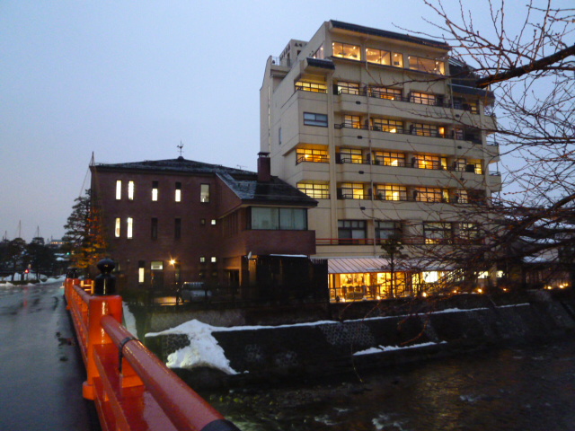 玄関の間口が少し狭いですが・・・まあ、泊まるだけだし。お部屋は8畳の和室。4階の川側の眺望の部屋を用意頂き感激。(安いプランなので、町側かと・・・)酒造などが並ぶ古い町並み、城山公園の小高い丘を遠目に眺め、真下には宮川、朱塗りの中橋がすぐ近く。とても景観の良いお部屋。「あっ、壁紙少し古いかな?」まあ、いいか。雰囲気が良いし♪