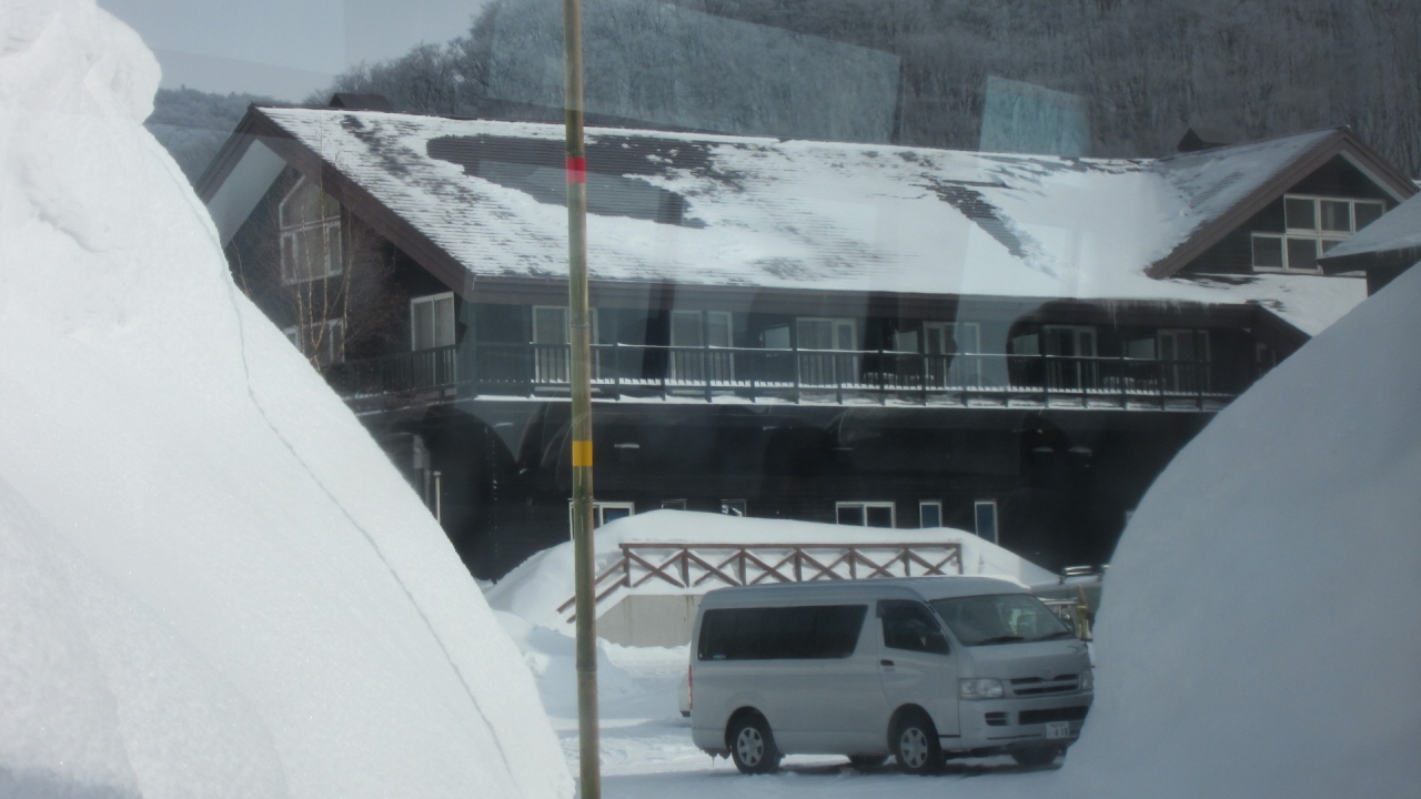 酸ヶ湯温泉旅館の日帰り入浴に行き来する際にバス停から建物が見えました。
