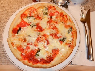 ヒルトン成田は宿泊レートが近年とみに安価になっているため、このところルームサービスでピザをよく頼んでいます。写真のマルゲリータの他大人向けのルッコラのピザがあり、どちらも2000円弱、プレミアムクラブの会員であれば1500円強で食べられます。焼きたての熱々の状態で持ってきてもらえますので、食べたことのない方は是非試してみてはいかがでしょうか。