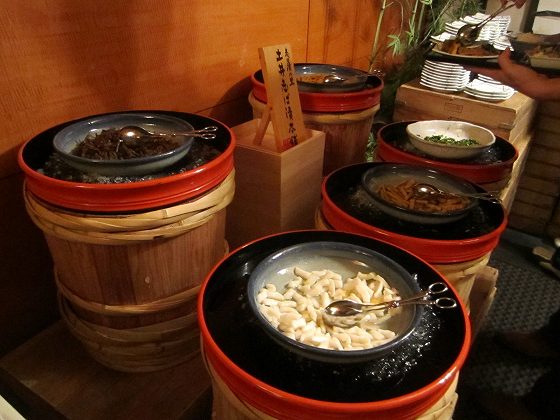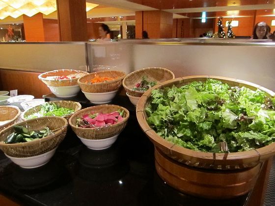 昼過ぎに到着したのですが、直ぐに部屋に入れてもらえました。部屋自体は可も無く不可もなく至って普通のデラックスルーム。南禅寺が目の前に見えるので景色は良いです。朝食は2階のレストランAQUABLUで頂きました。ここは何といっても京野菜のサラダと漬物があるのが特筆すべきことですね。海外のビュフェに飽きてくるとこう言う地方色のある食べ物が並ぶと嬉しいです。