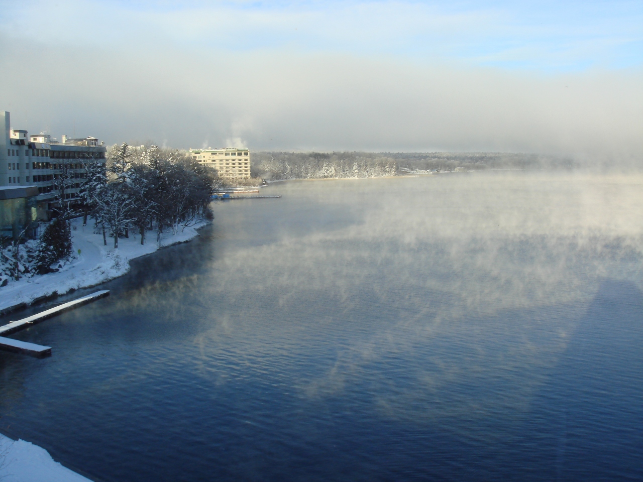 12月初で吹雪だったのは残念ですが、2日目の朝は綺麗に晴れて窓から見れる湖が幻想的できれいです。