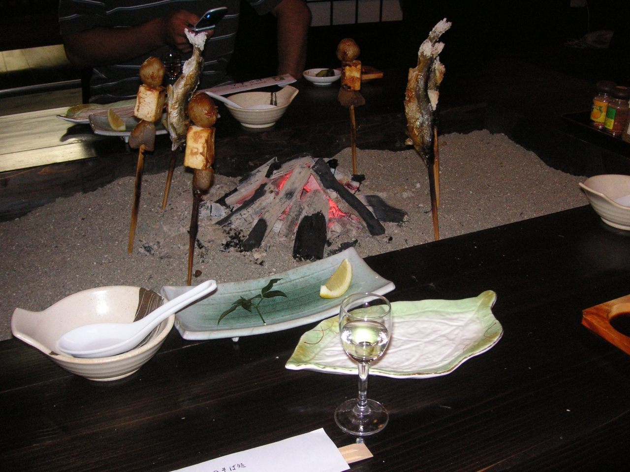 - いろりがあります。お団子と川魚を頂きました。こういう演出がにくいです。
