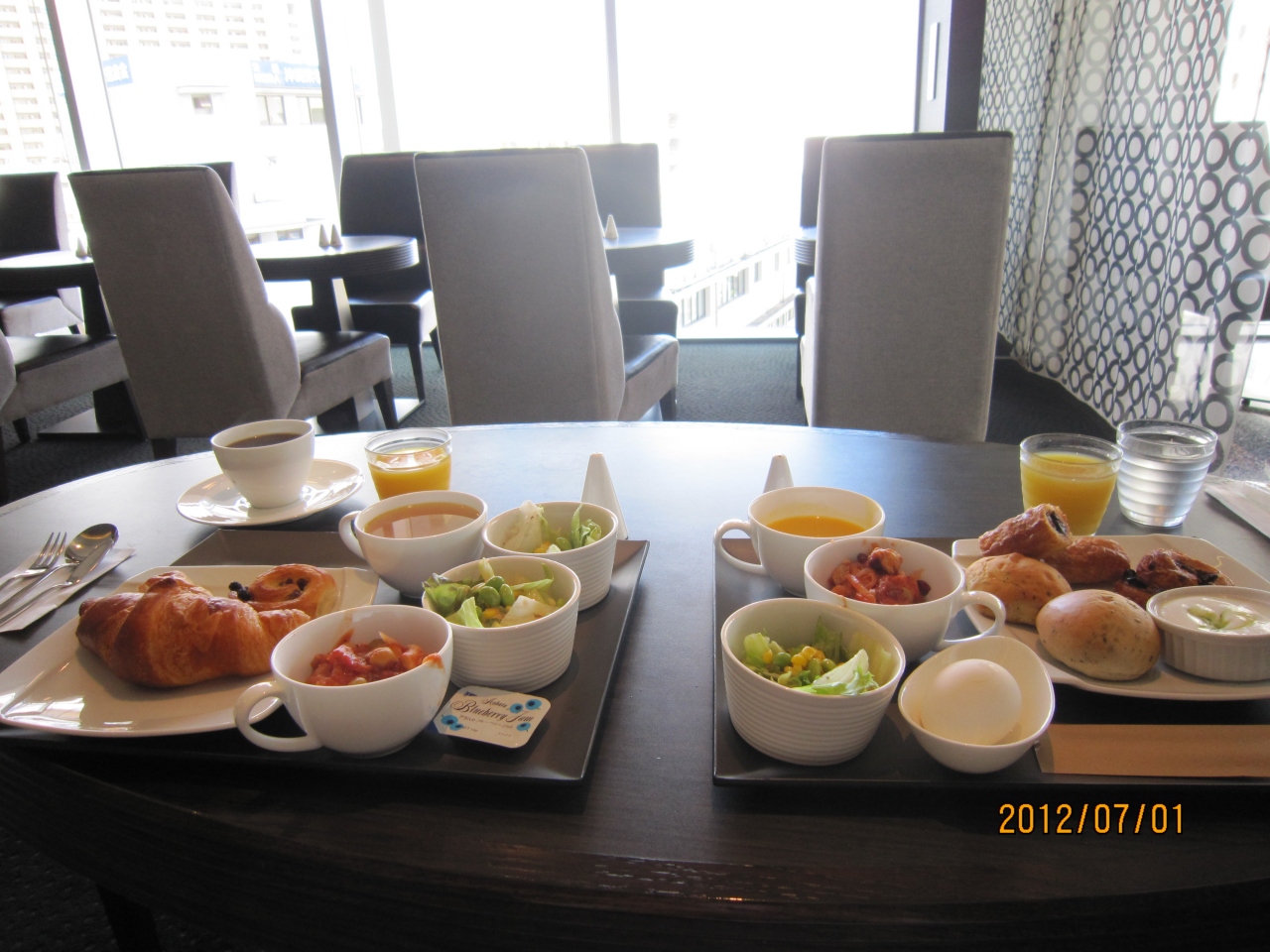 フロントのある四階のゲストラウンジで頂く朝食は、ビュッフェ形式ながらも、パンが数種類、スープが二種類、ホットメニューとサラダが各々一種類、ゆで卵、ヨーグルト・・・と、決して種類は多くありませんが、どれも美味しかったので満足できる内容でした。