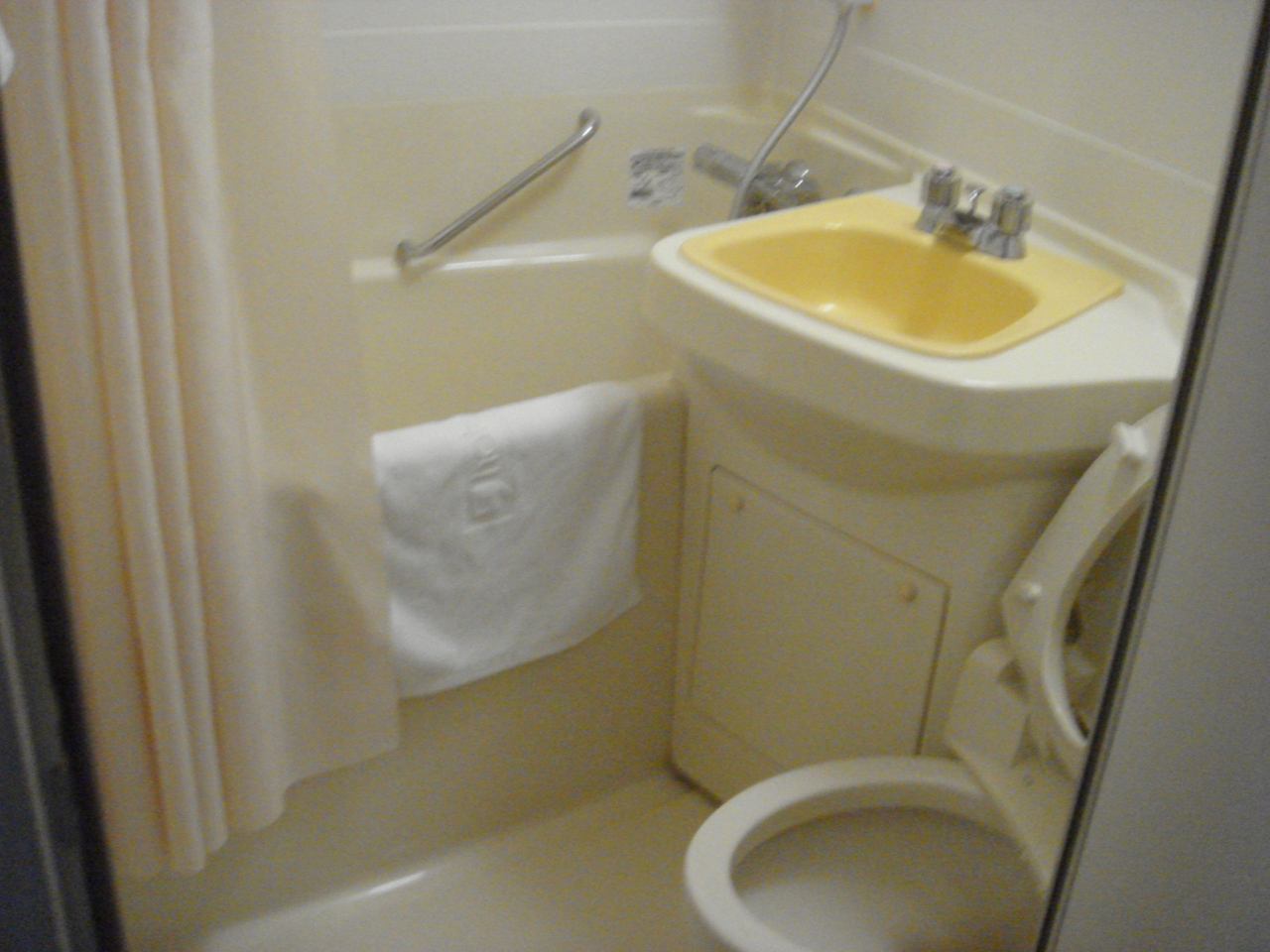 ロビーや部屋はリフォームされているが、バスルームでかなり経年しているのがわかる。