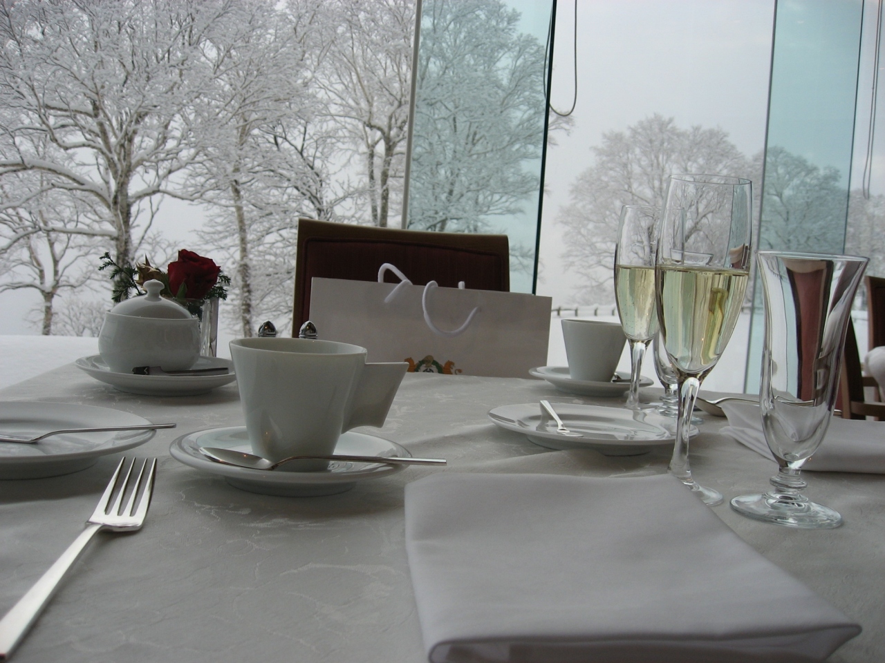訪れたのは冬でしたが、客室やロビーからの形式は一面の銀世界で幻想的でした。