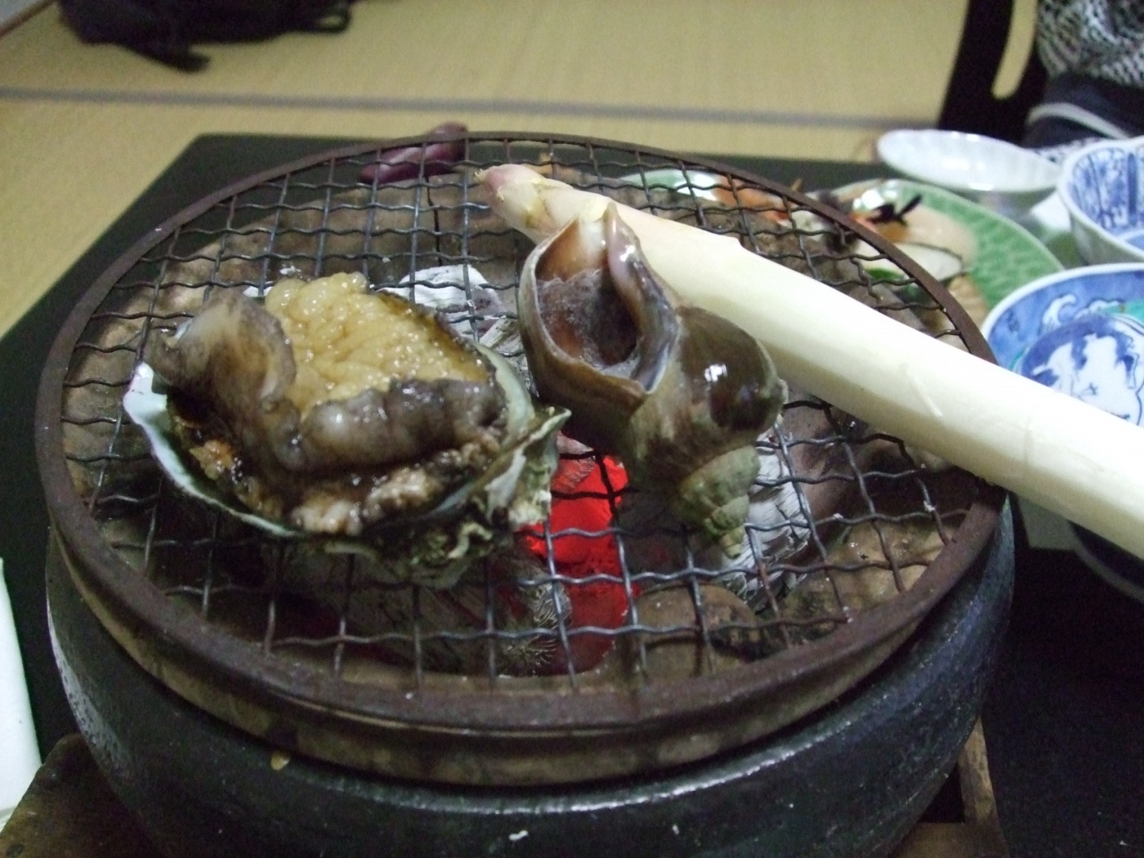 アワビは刺身以外に、七輪焼き、鍋とと~っても贅沢。