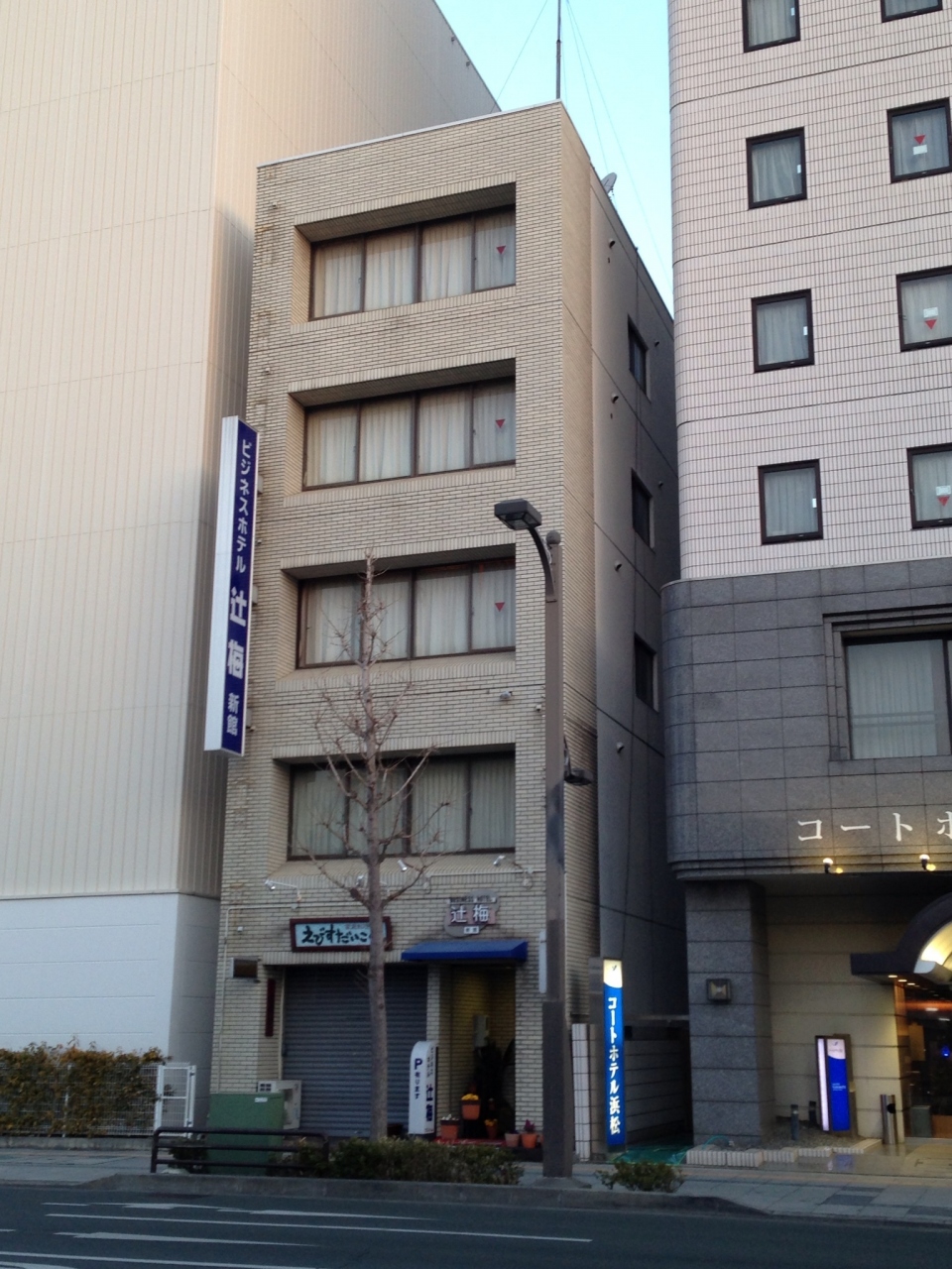 浜松駅南口から歩いて3分。周りにはビジネスホテルが何軒もありますが、その中でもかなり古い方に入ると思います。大通りを挟んで斜め前に同じ名前の「本館」があるので間違わないように注意が必要です。