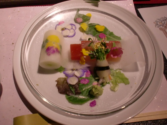 夕食はかなり凝っていて懐石風、テーブルも低めのゆったりです