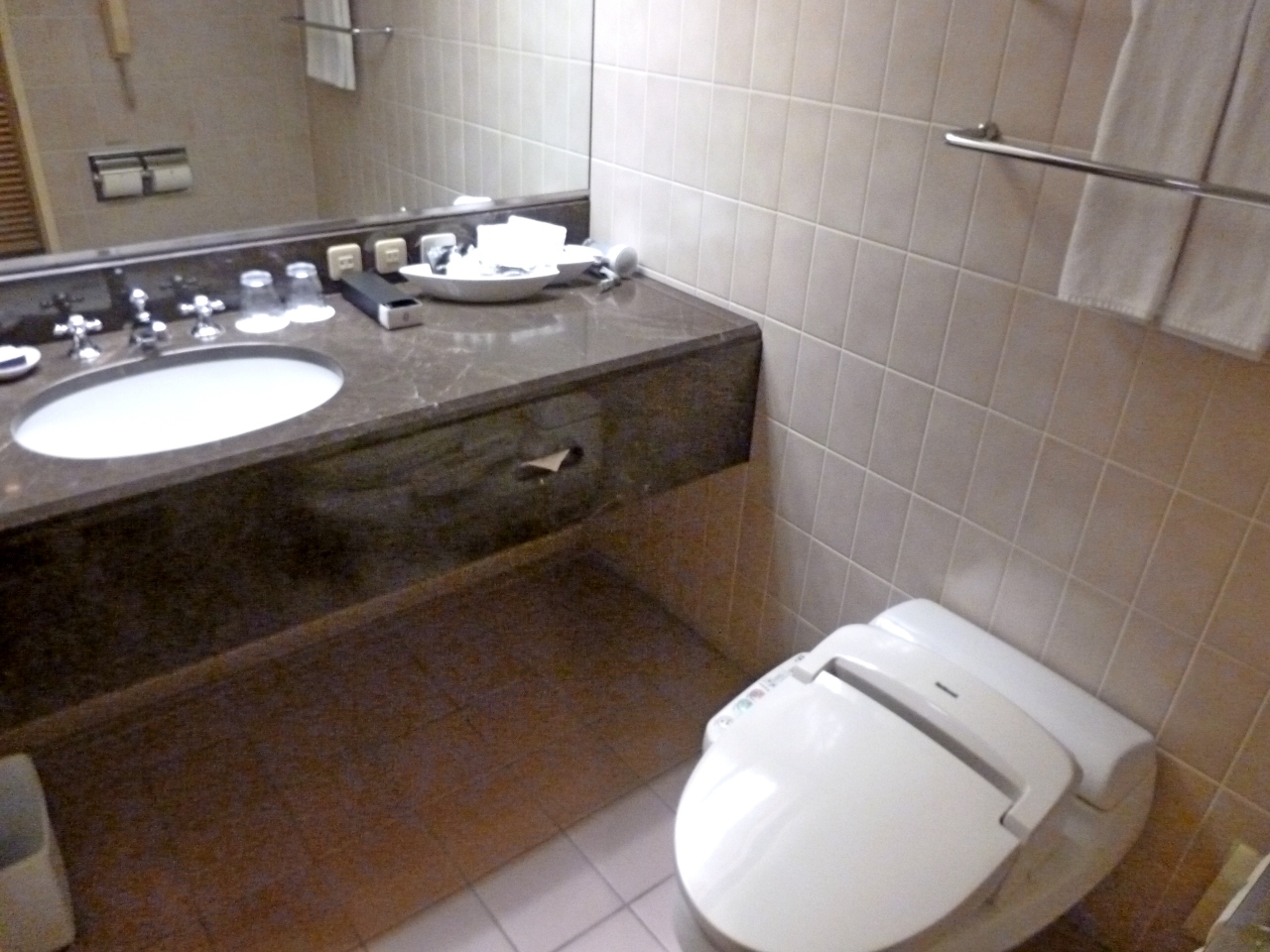 早朝会議のため宿泊.部屋はさすがに広く,デスクのスペースも十分,インターネット環境も申し分ない.しかしさすがにバブルの頃の建物のせいか,風呂はやや狭く,シャワーも一緒.洗面台はやや色あせている.朝食は国際会議場へ,アメリカンスタイルの給仕でもってきてもらった(会議で写真は撮れなかった)が,パンなどはとてもおいしかった.五つ星の風格は十分にある.