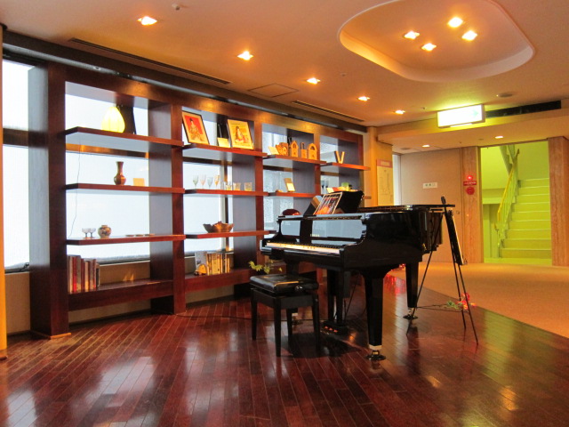 8、ロビーでピアノの自動演奏を聴きながら無料Wifiが使用可能。