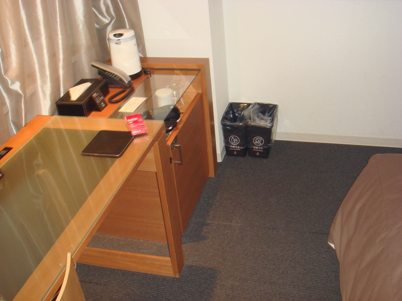 部屋は狭いが使いやすい。備品も凝っている、デスクが広い。ベッドはダブルで、寝心地がいい。