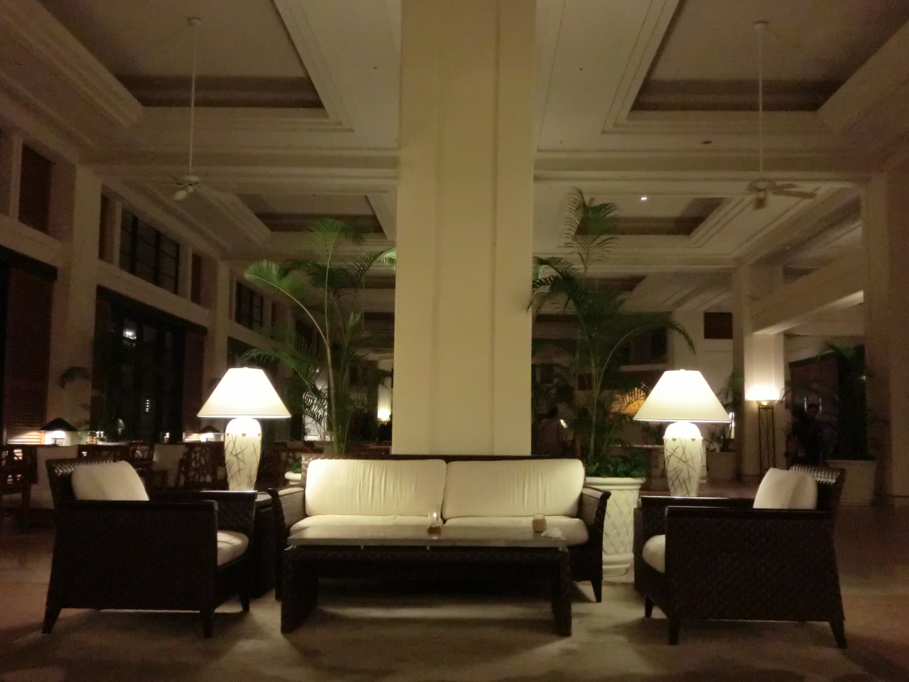 友人との旅行2日目に宿泊しました!まず驚いたのはロビーフロアが半屋外になっていることでした(@д@)住んでいる北海道と比べるとありえない光景に驚き…。冬だったので若干寒かったですが、ウエルカムドリンクが暖かく、チェックインもフロントに行かずドリンクを飲みながらゆったり待てたのでセレブな気分を味わえました。部屋までの廊下や階段も一切窓がなく、暖かい時期なら最高だろうな~と思いながら部屋へ行きましたが…端っこの部屋だったためとにかく遠いのと、部屋の前に大きな建物(室内プール?)があり、外の景色が見れなかったのは残念でした。また、内装等の改修時期だったのか、自分たちの部屋に向かうまでに、扉が開けっ放しで作業途中のガランとした他の部屋を見なければいけないのも惜しいところでした。とはいえ、ホテル全体の雰囲気や、外のプール、売店、ブセナ海中公園など、ホテル周りを歩いているだけで1日過ごせるくらい見所満載で満足です!朝食も、おかゆなどの和食もあり、前日沢山飲んだ日でも安心(?)です。(飲み物にお茶がなかったのは残念ですが・・・。)かわいい部屋の鍵は売店でも購入可能なので、旅の記念にいいと思います(^-^)