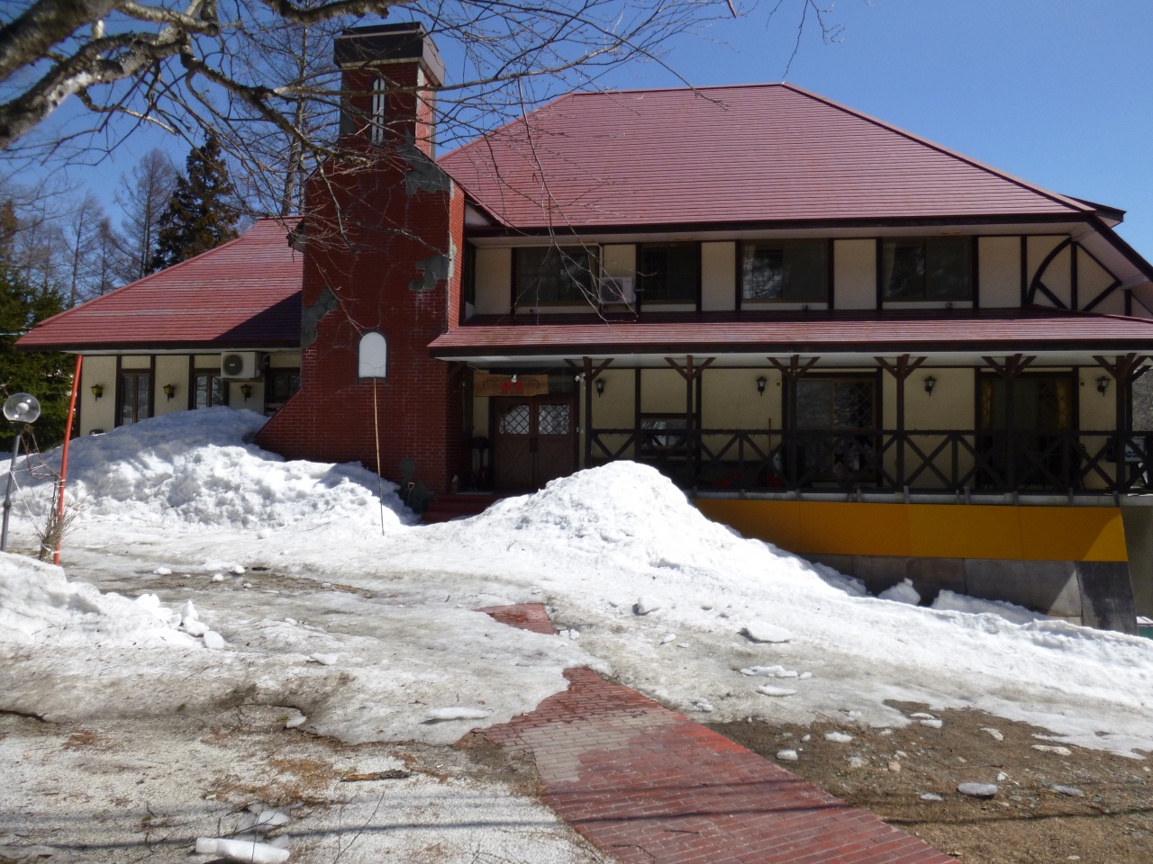 JR大糸線神城駅から徒歩10分、五竜スキー場まで徒歩2分にあり、レンガ造りの大きな煙突が目印のペンションです。夕食は和風仕立ての欧風家庭料理のフルコースディナーです。ペット同伴OKの宿で、ワンちゃん連れでなくても看板犬のコッチちゃんが癒してくれます。