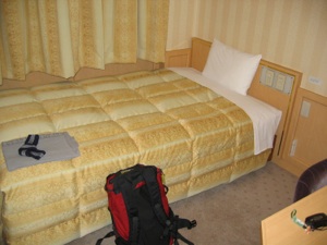 ホテルはかなりくたびれた感じのビジネスホテルです。部屋も狭いので寝るに徹します。