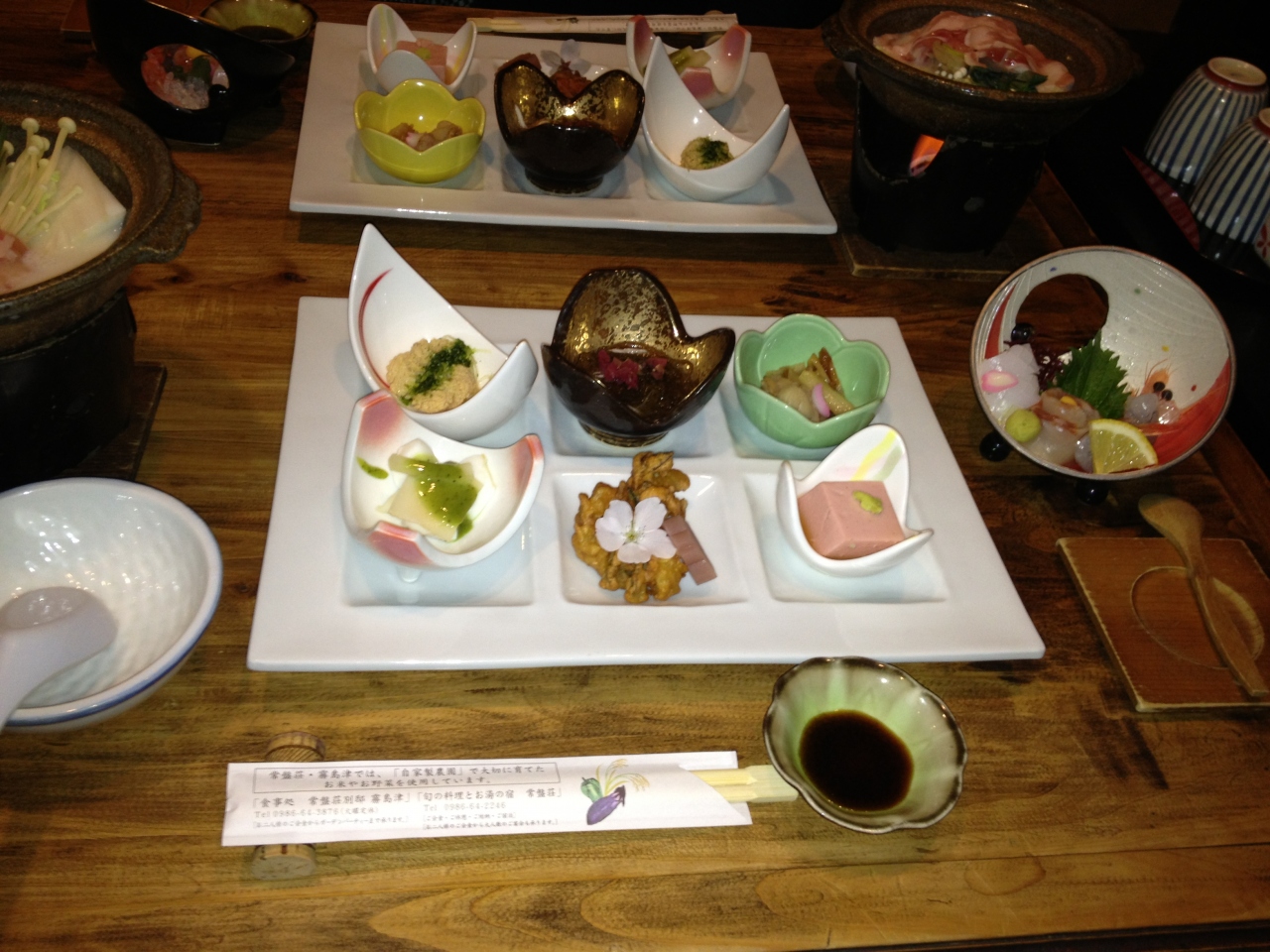 料理が売りの旅館のようで、当日は宿泊客より宴会のお客さんが多く、夕食は道を隔てた同じ経営のレストランでの夕食になっていたが、値段の割りには田舎料理ながら上品で十分な品数と内容でした。お風呂は小さいがサウナと露天風呂もあり、宿泊客が少なく貸切状態でした。