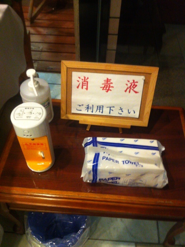 ホテルの入り口に写真のように消毒が出来る場所が設けられていました。今の時期は、花粉症や黄砂など、外の空気が汚れているので、部屋ではなくホテルの入り口にあるのは清潔感があってとても好感がもてました。みなさん、使っていらっしゃいました。