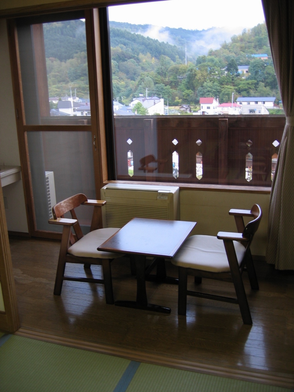 駐車場にバイクを停めようとしたところ、フロント氏が出てきてバイクを建物脇の歩道上に停めさせてくれました。そのあたりの配慮はさすが北海道の宿です。