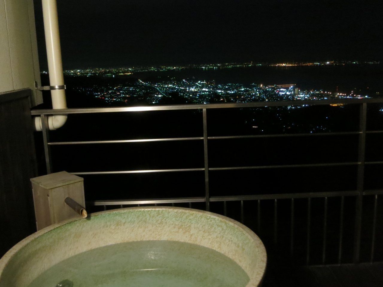 近場の温泉でのんびりしたいと思って、ここを選びました。蒲郡近辺の温泉はほとんど海辺にありますが、ここは三河湾スカイラインの峠に近い、山の上にあります。海までは少し距離がありますが、その代わり、見晴らしがよく、三河湾も見通せます。夜景もとってもきれいです。宿の中は夜空がテーマになっていて、レストランは夜になると天井に星がきらめいています。