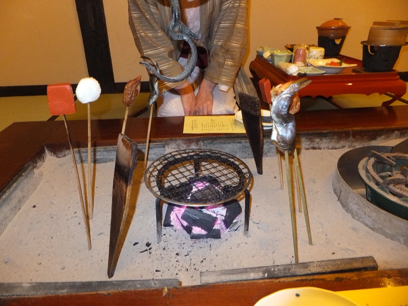 食事は初めて食べた、狩場焼。女将が食事会場に一組ずつ挨拶に回っていた。
