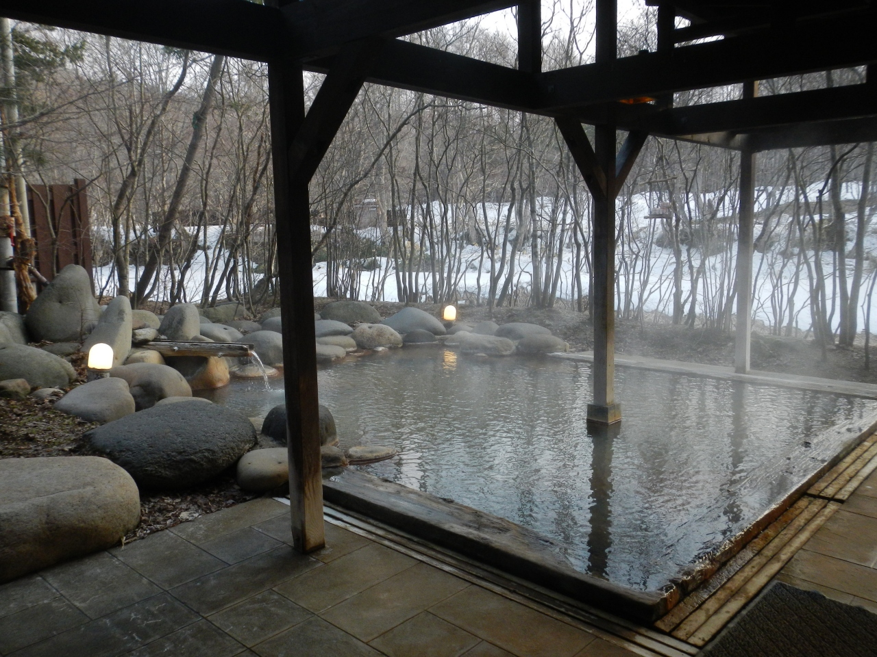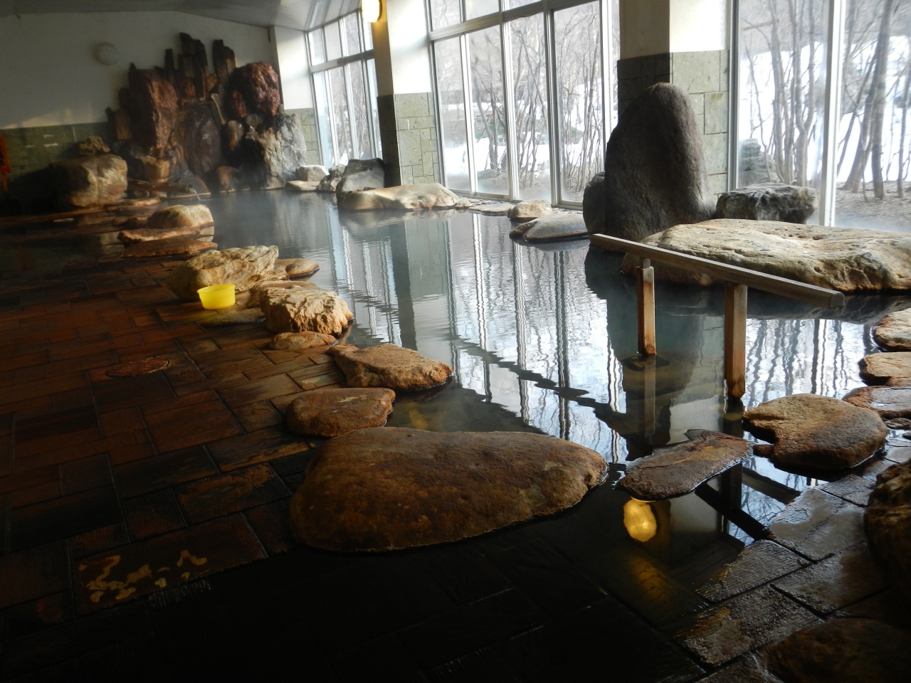 函館から大沼を抜け、長万部方面へ向かう途中にある落部から内陸に10kmくらい入ったところの「上の湯温泉」にあります。