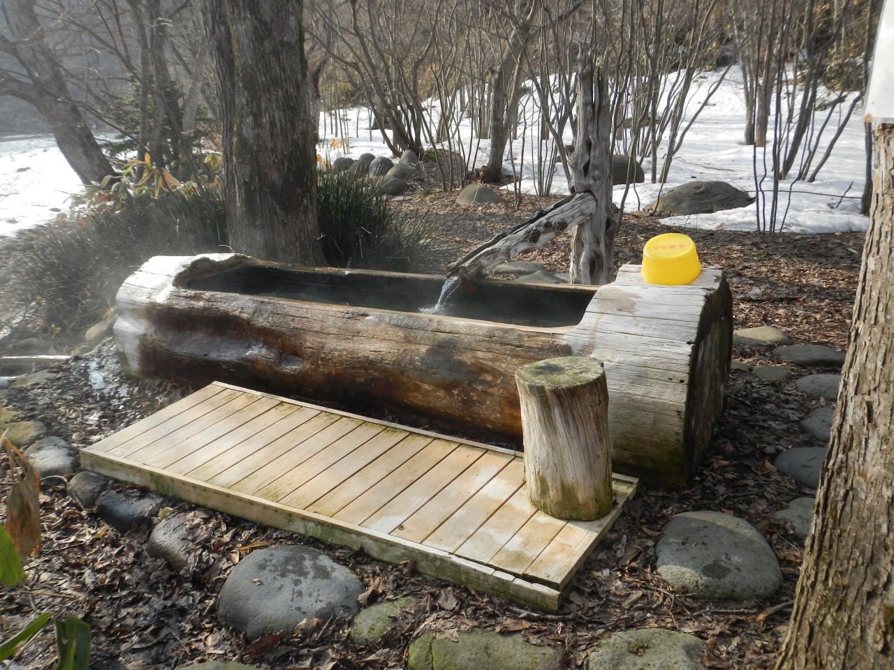 露天には35トンの巨石をくりぬいた風呂、トチの木をくりぬいた風呂などいろいろあります。
