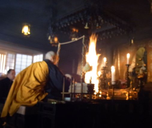 次の日の朝には、朝のお勤め、その後は敷地そばにある護摩堂にて護摩焚きも拝見