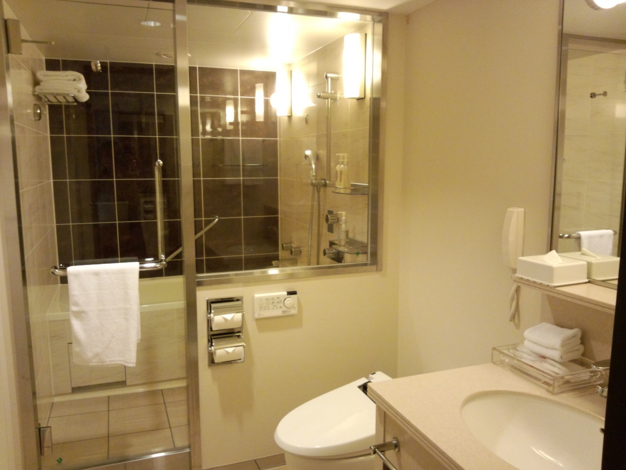 部屋は落ち着いた色調で、ガラス張りのシャワールームもいい雰囲気でした。